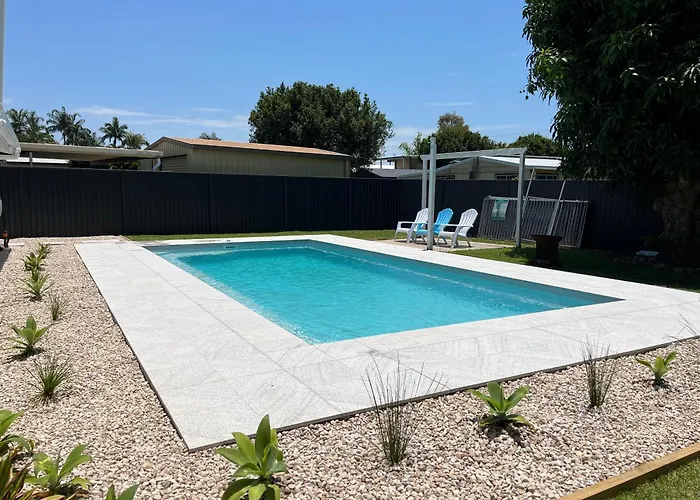 Deze 2-slaapkamer Pet Friendly Beach House With Pool - Sleeps 10 Urangan villa bevindt zich in de wijk Urangan, op 2 km van Nielsens Park, en beschikt over een privézwembad waar gasten kunnen ontspannen.